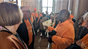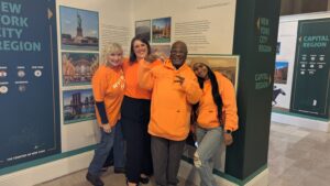 Aspire of WNY was proud to stand alongside New York Disability Advocates (NYDA) in Albany recently to call for stronger support for Direct Support Professionals (DSPs). Representing Aspire of WNY were Paris, an advocate and individual supported by our agency; Jade, Paris’s support staff; President & CEO Renee Filip; and VP of Communications & Growth Opportunities Megan Rechin. Together, they joined agencies, families, and self-advocates from across the state to urge leaders to invest in fair wages, stable housing, childcare, and healthcare for the workforce that makes our mission possible.